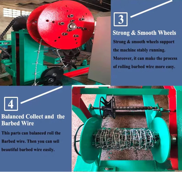 Barbed Wire Machine is designed to make single twist barbed wire or double twist barbed wire. It includes two main parts of wire wrap machine and barbed wire collection machine.